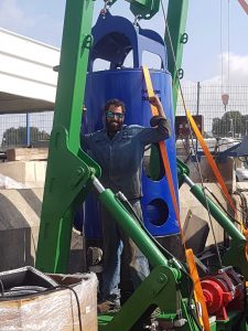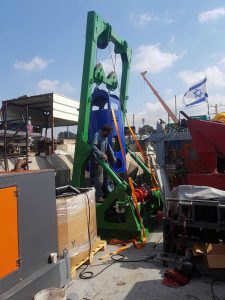 תוכנן ויוצר עבור פרוייקט לבניית שובר גלים הנבנה באמצעות GEOTUBES ונועד ולהקטין את עוצמת הגלים המגיעים לחוף אשקלון וגורמים לארוזיה של מצוק הכורכר ומפולות סלעים , השובר ממוקם כ- 200 מ' מהחוף ולכן היה צורך לשאוב חול מקרקעית הים באזןר השובר הAFRAME תוכנן לשאת את משאבת החול ולשלוט בגובה ובאחוז המוצקים הנשאב מהקרקעית